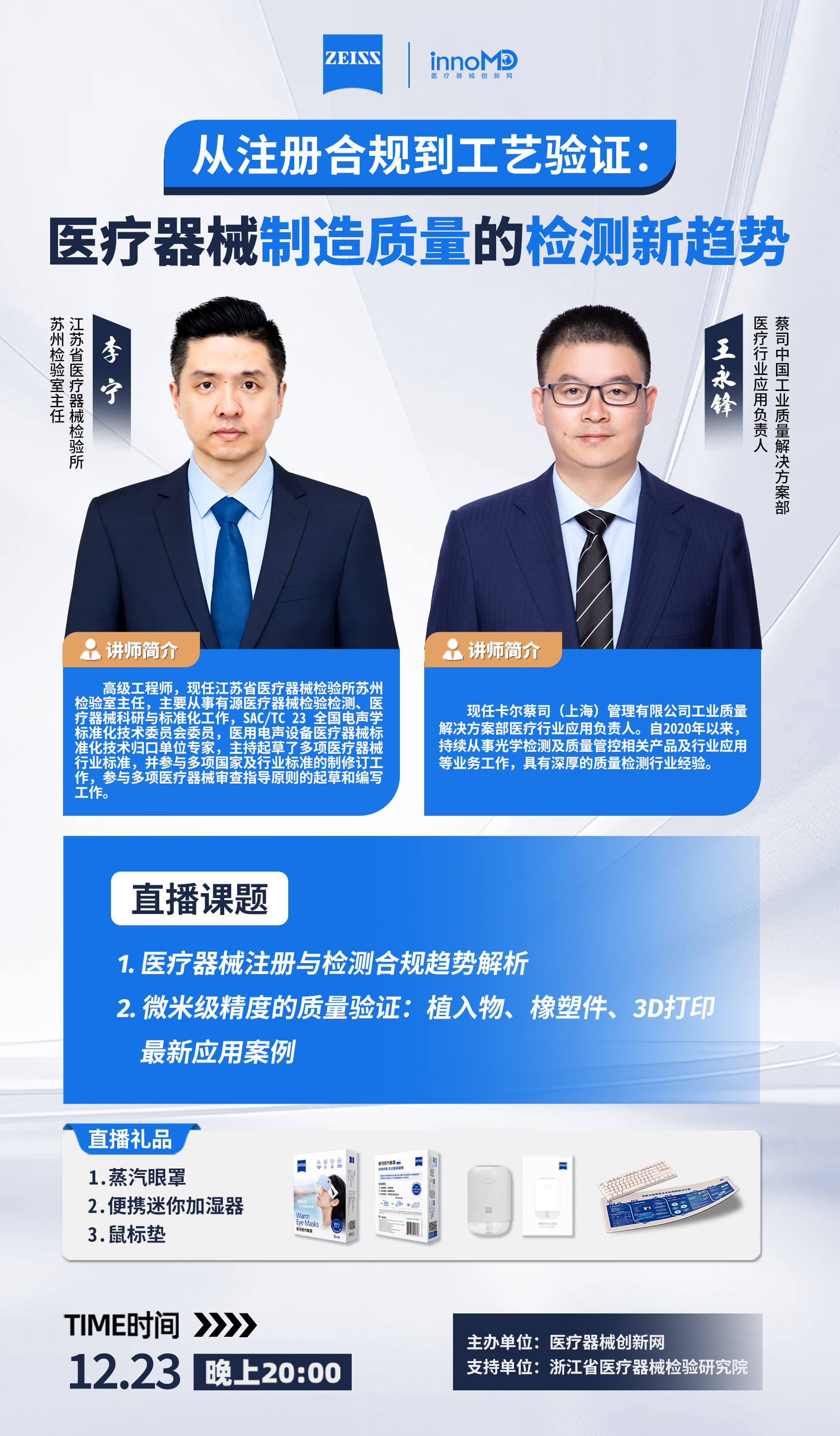 12 月 23 日晚 8 点,由医疗器械创新网网主办,江苏省医疗器械检验所、浙江省医疗器械检验研究院支持的「从注册合规到工艺验证:医疗器械制造质量的检测新趋势」重磅直播来袭!行业权威专家联手破局,带你直击痛点、抢占技术先机!